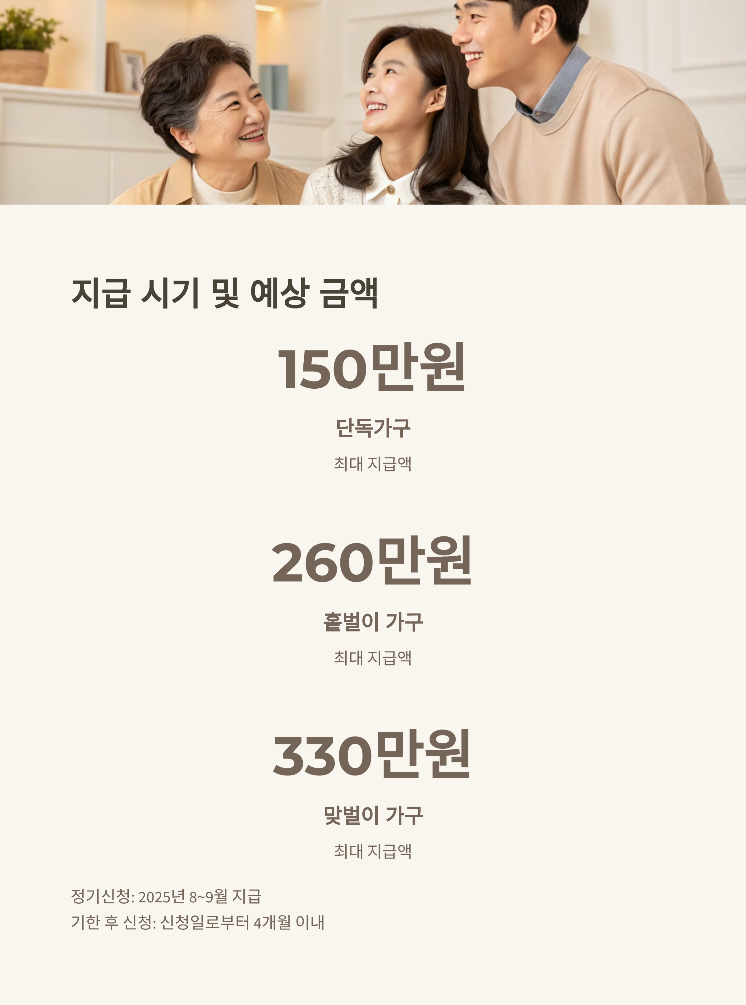 가구 유형과 소득에 따라 최대 330만 원까지 받을 수 있으며,