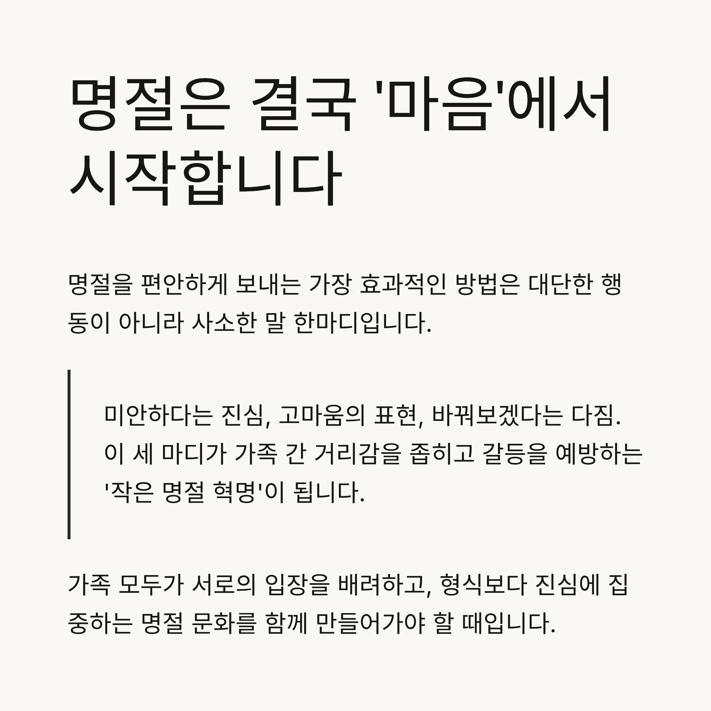 결론, 명절은 결국 ‘마음’에서 시작합니다