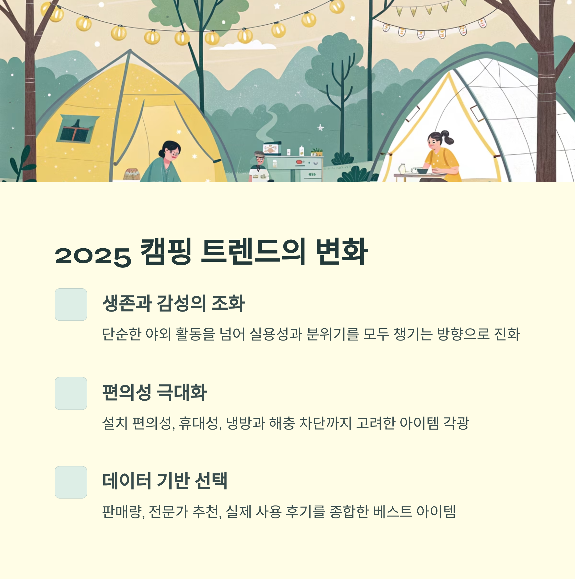 2025년 여름, 캠핑 시즌을 앞두고 캠핑 고수들이 실제 사용하는 트렌디한 필수템을 분석해 소개합니다