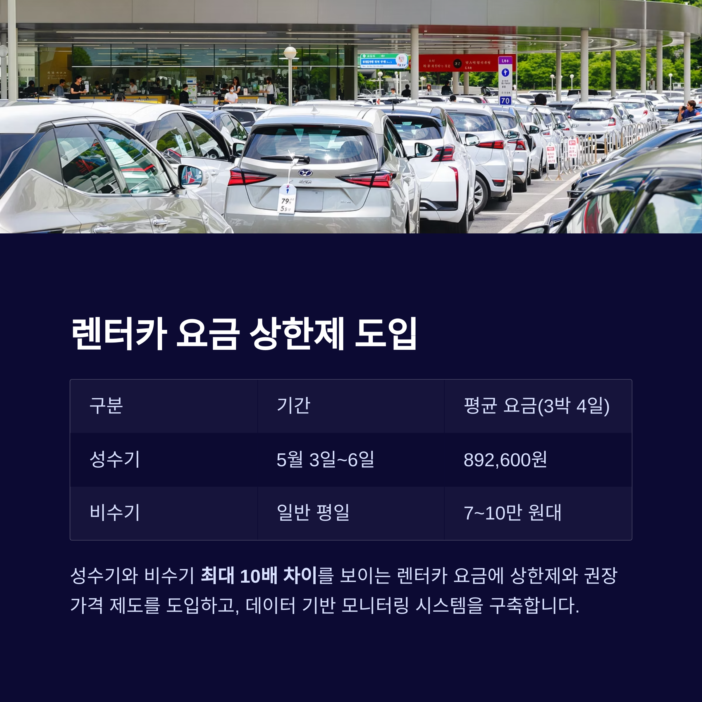 | 렌터카 | 성수기 폭등 요금 방지 위한 권장가·상한제 도입 |
