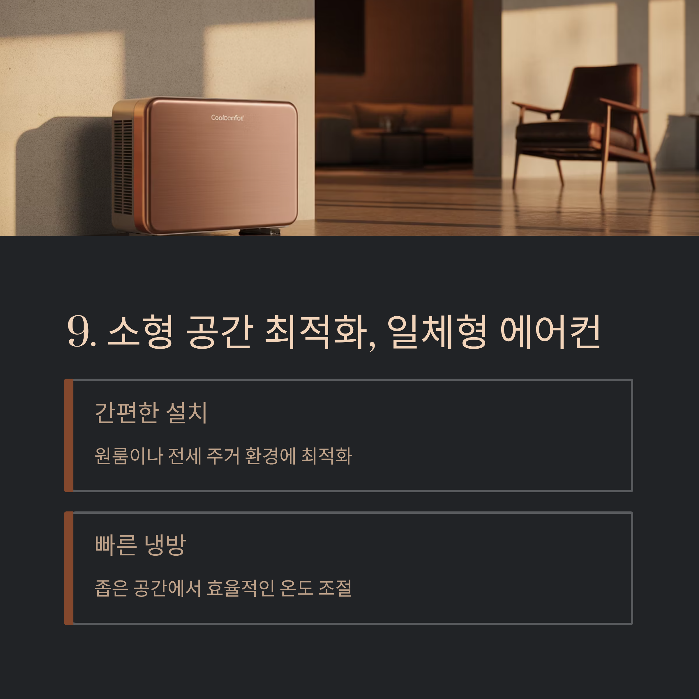 원룸이나 전세 주거 환경에 맞춰 공간 효율을 높인 일체형 에어컨은