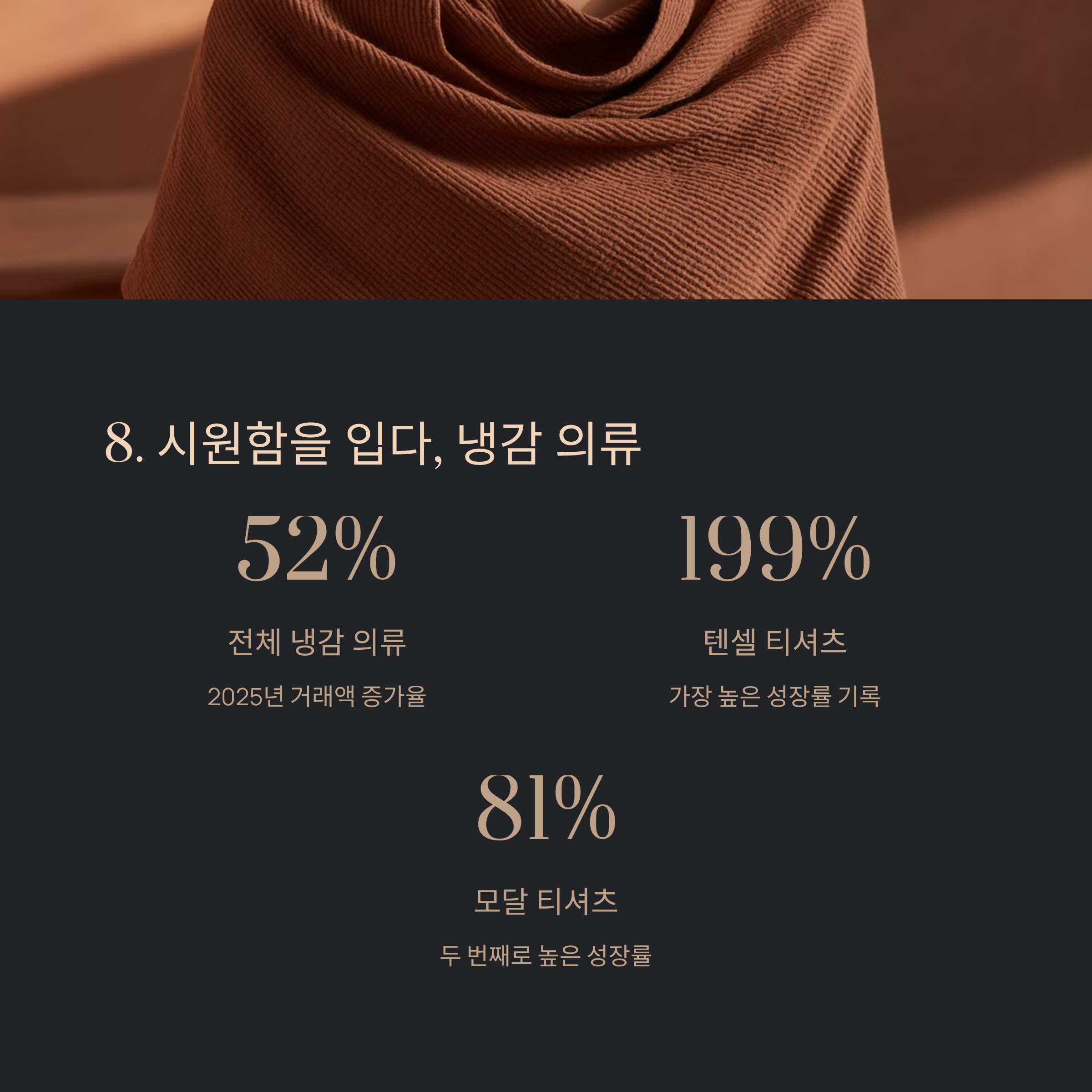 2025년 냉감 의류 거래액은 전년 대비 52% 증가했습니다.
