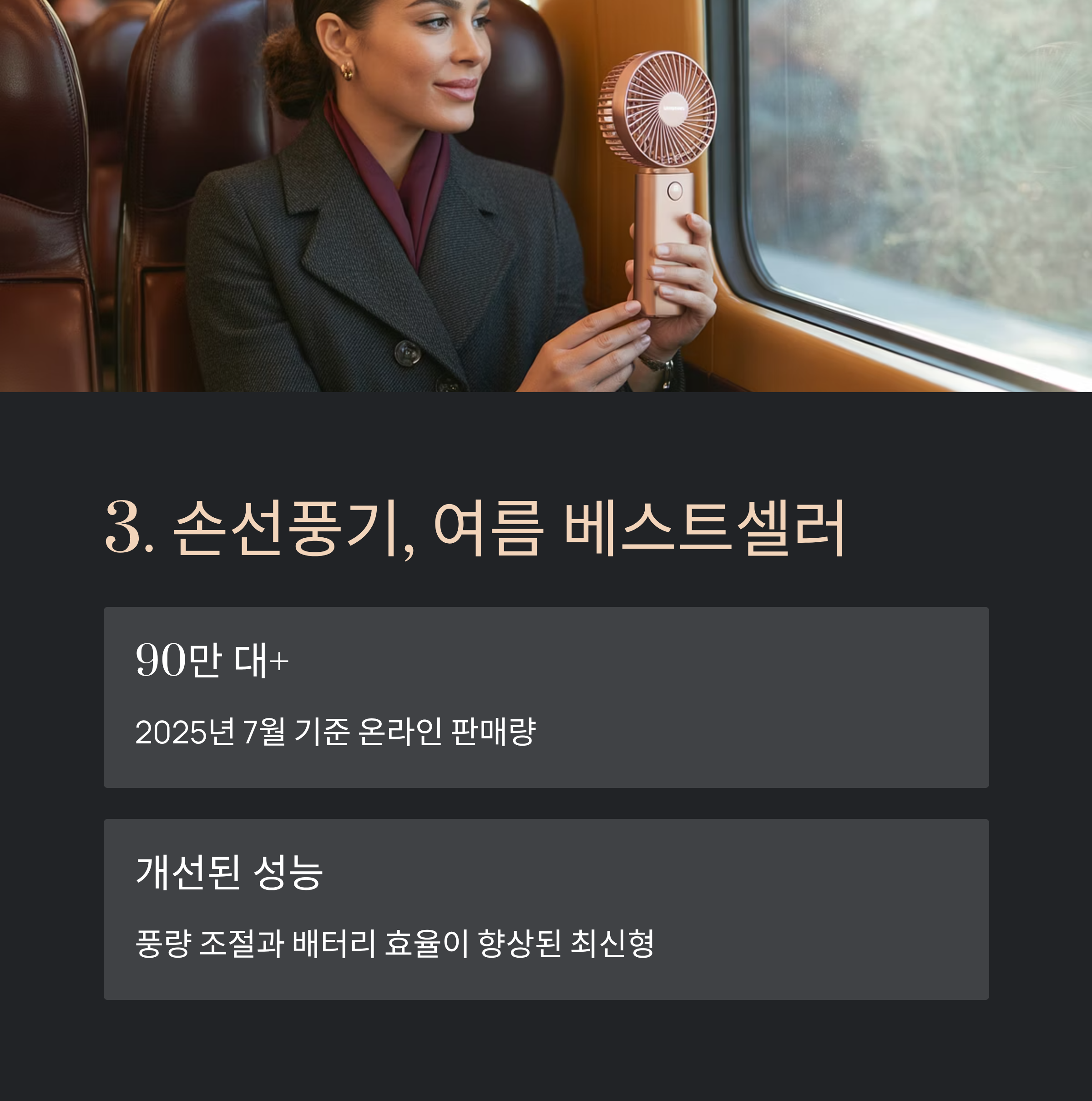 2025년 7월 기준 온라인 판매량이 90만 대를 넘은 손선풍기는
