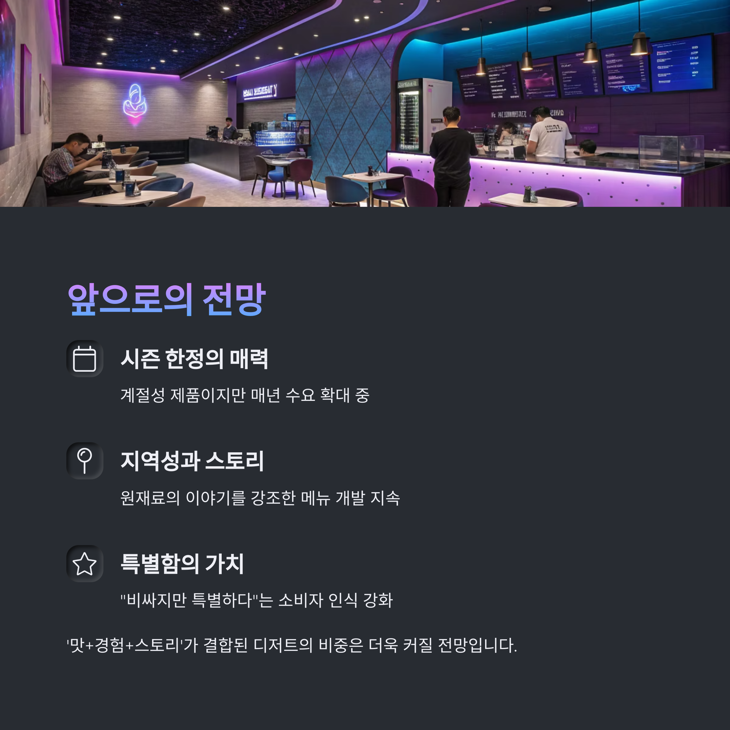 “비싸지만 특별하다”는 소비자 인식은 프리미엄 디저트 시장의 지속 성장을 가능케 하고 있습니다.