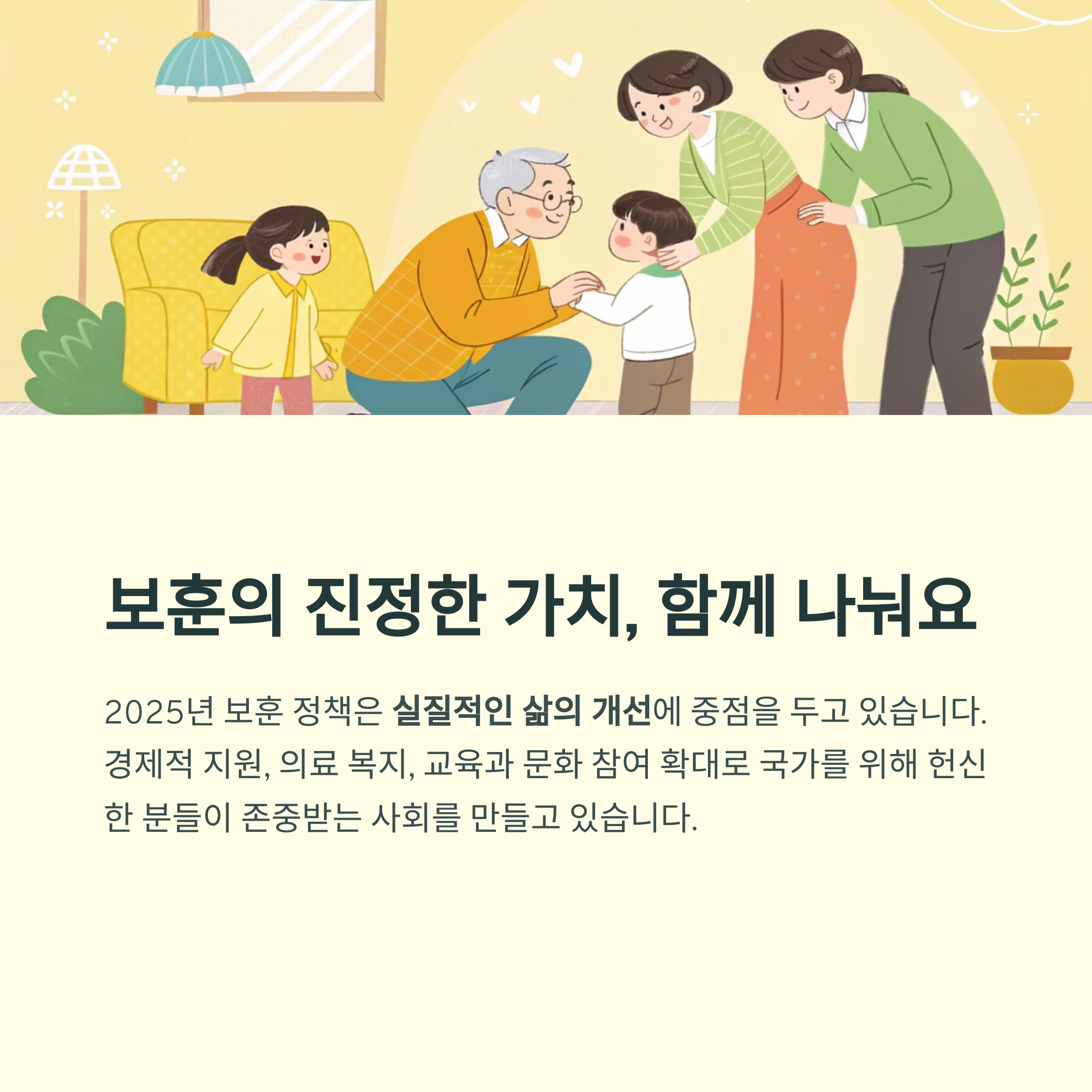 2025년 보훈 정책은 ‘실질적인 삶의 개선’에 방점을 두고 있습니다