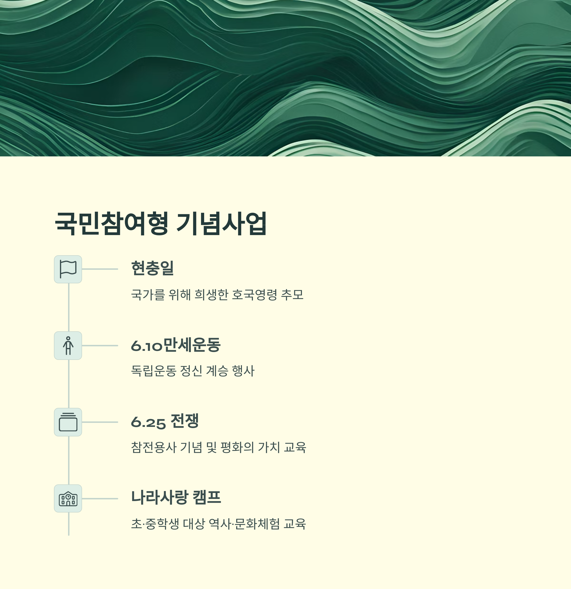 국민이 직접 참여하는 보훈문화 형성에 중점을 두고 있습니다