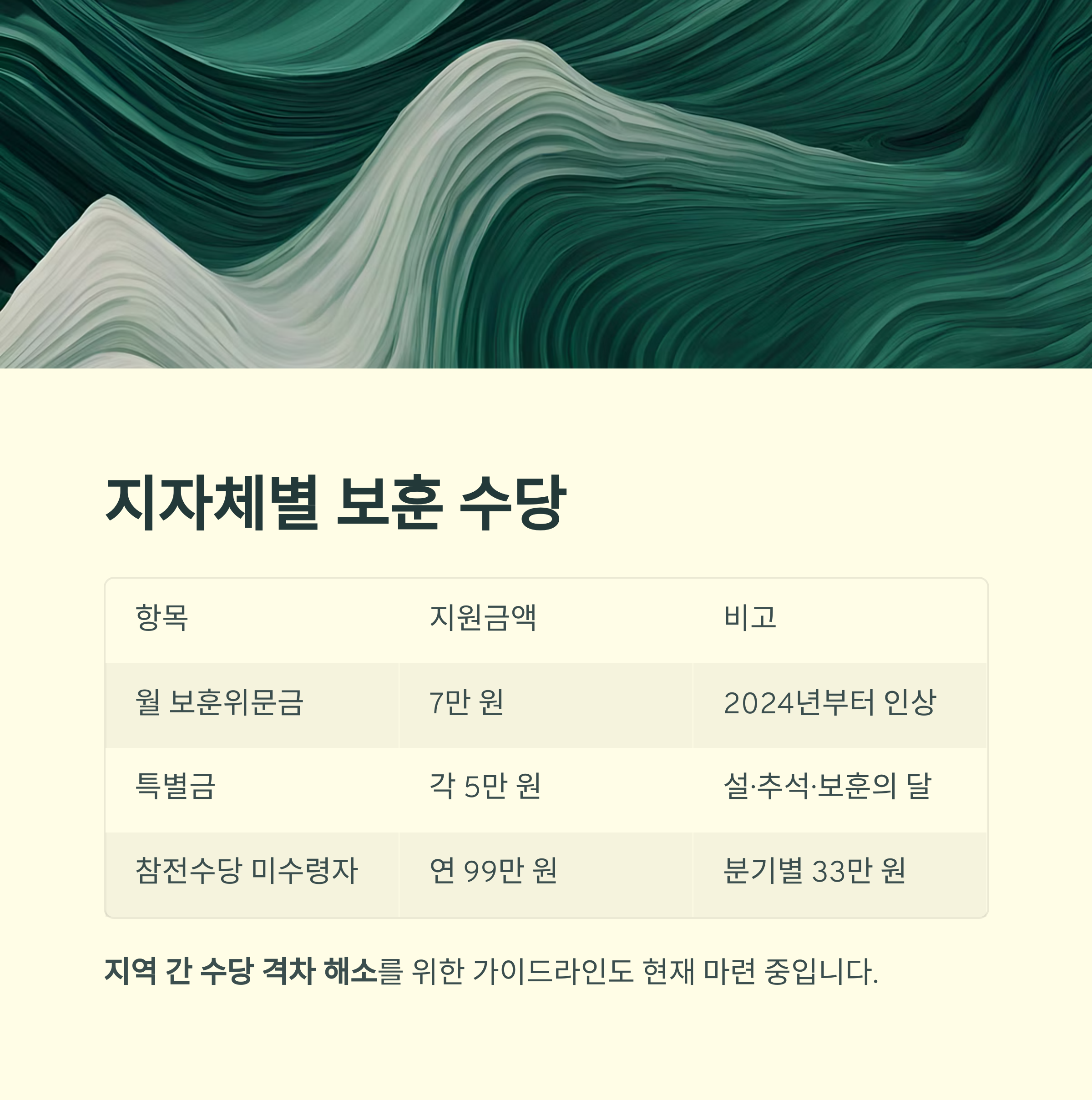 | 월 보훈위문금 | 7만 원 | 2024년부터 인상 |