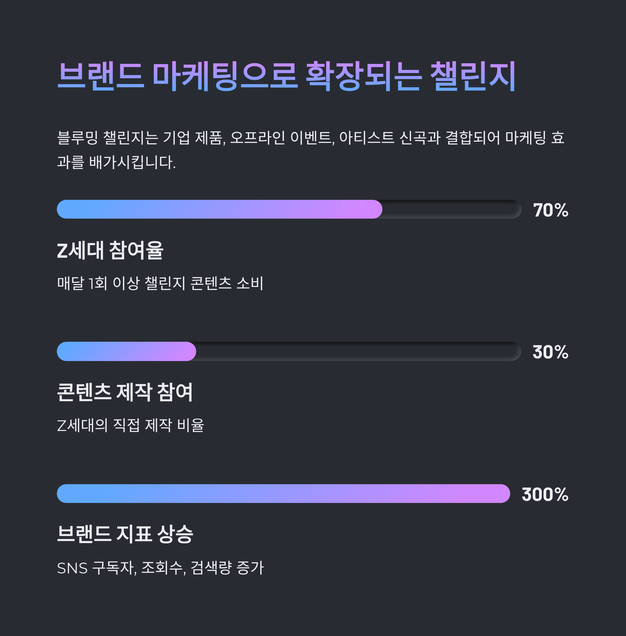 Z세대의 약 70%는 매달 1회 이상 챌린지 콘텐츠를 소비하며,