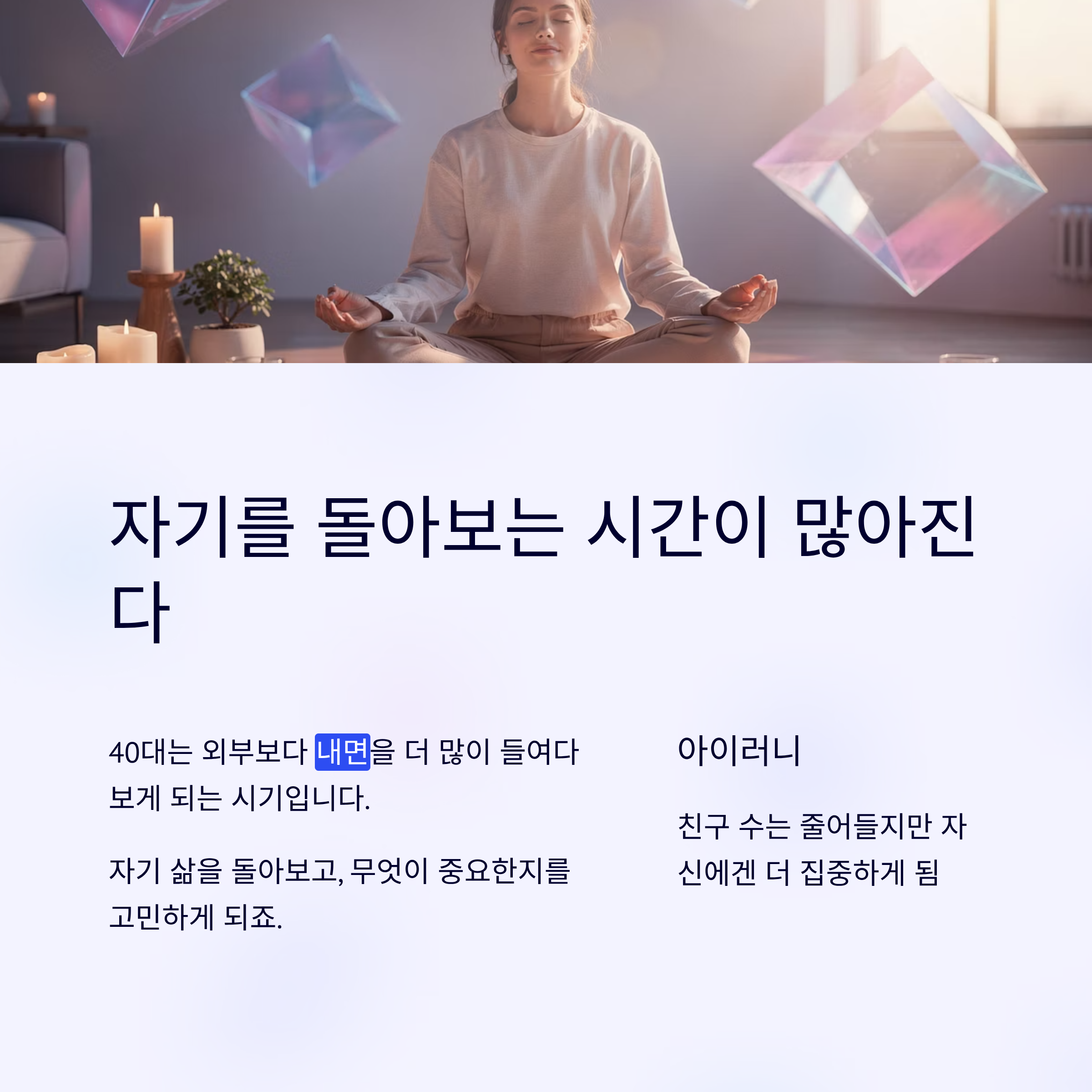 40대는 외부보다 ‘내면’을 더 많이 들여다보게 되는 시기입니다.