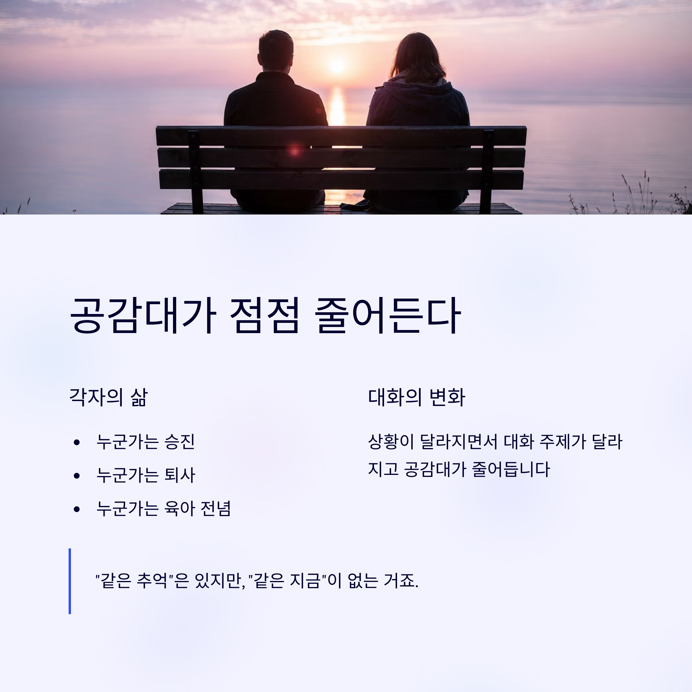 이런 상황 속에서 대화 주제가 달라지고, 공감대가 줄어드는 건