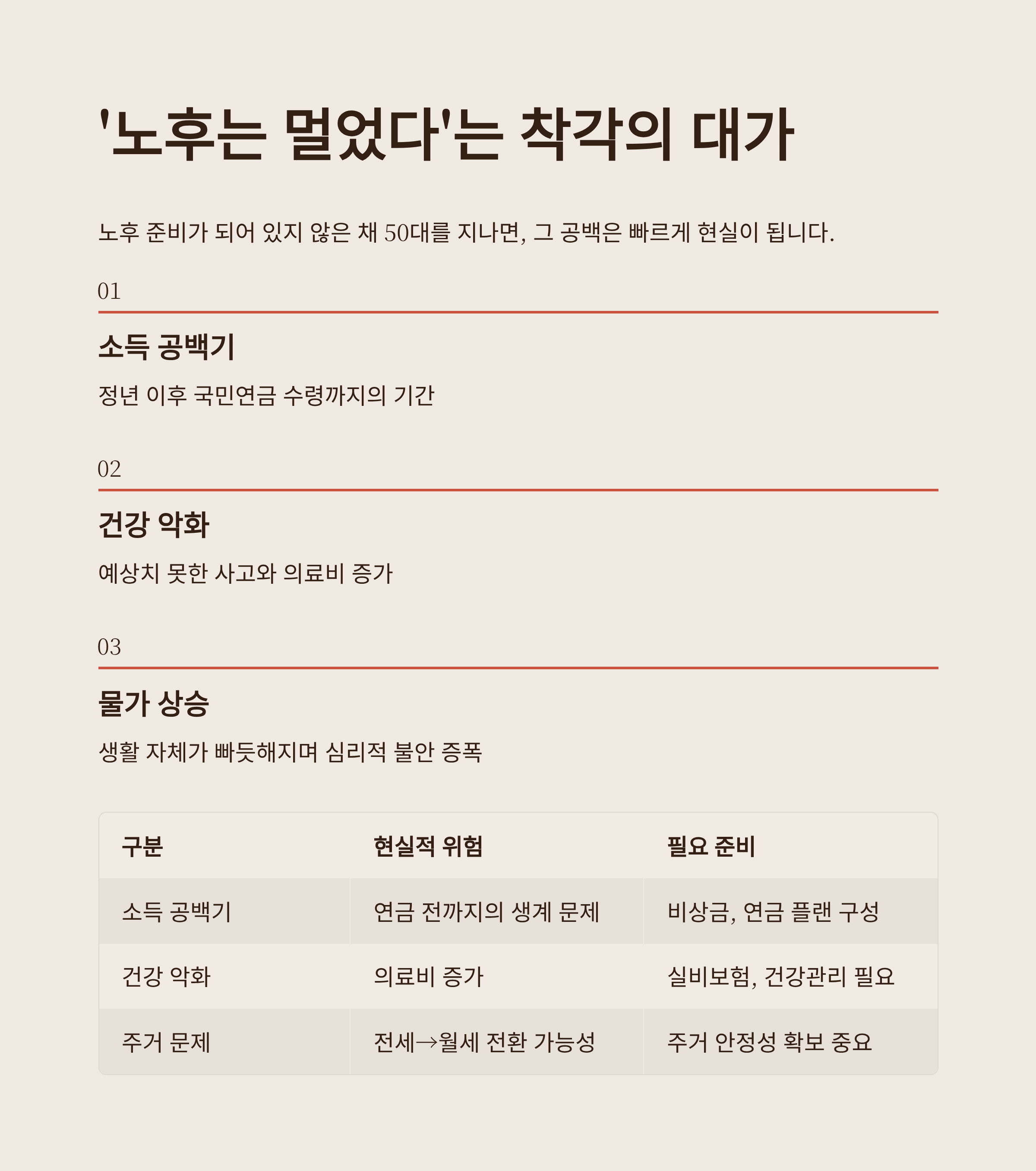 노후 준비가 되어 있지 않은 채 50대를 지나면, 그 공백은 빠르게 현실이 됩니다.