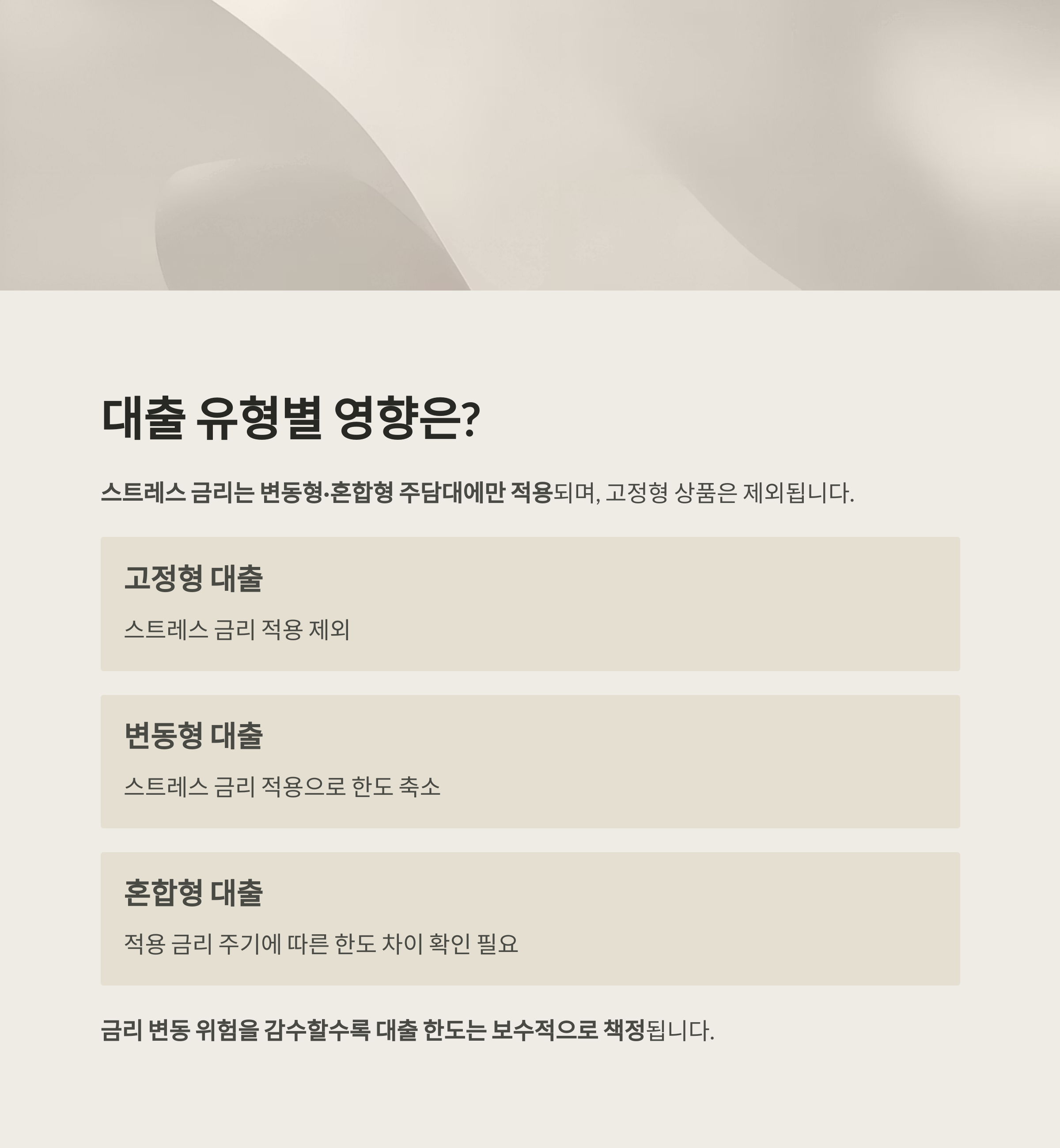 스트레스 금리는 변동형·혼합형 주담대에만 적용되며, 고정형 상품은 제외됩니다.