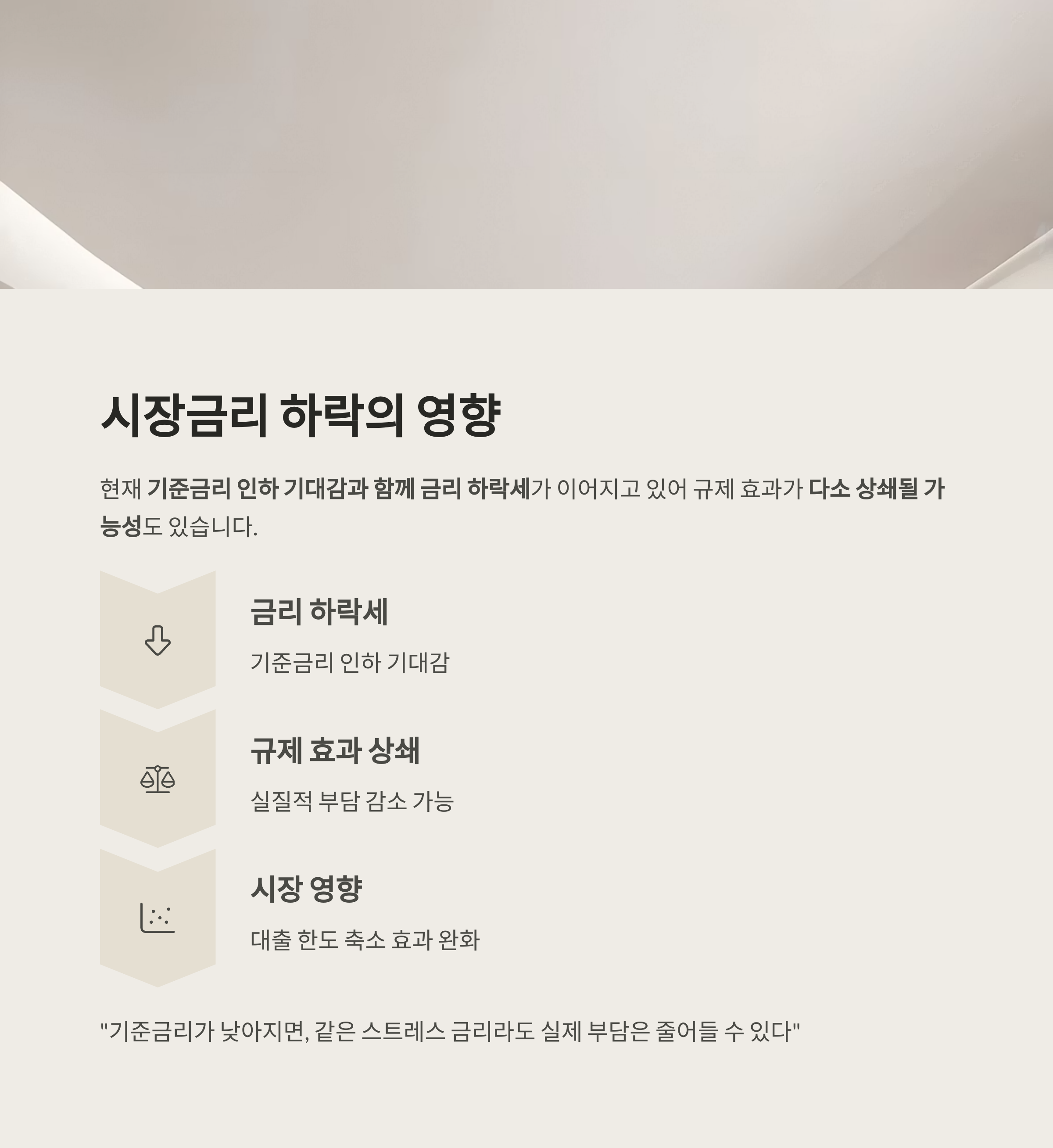 "기준금리가 낮아지면, 같은 스트레스 금리라도 실제 부담은 줄어들 수 있다"는 분석입니다.