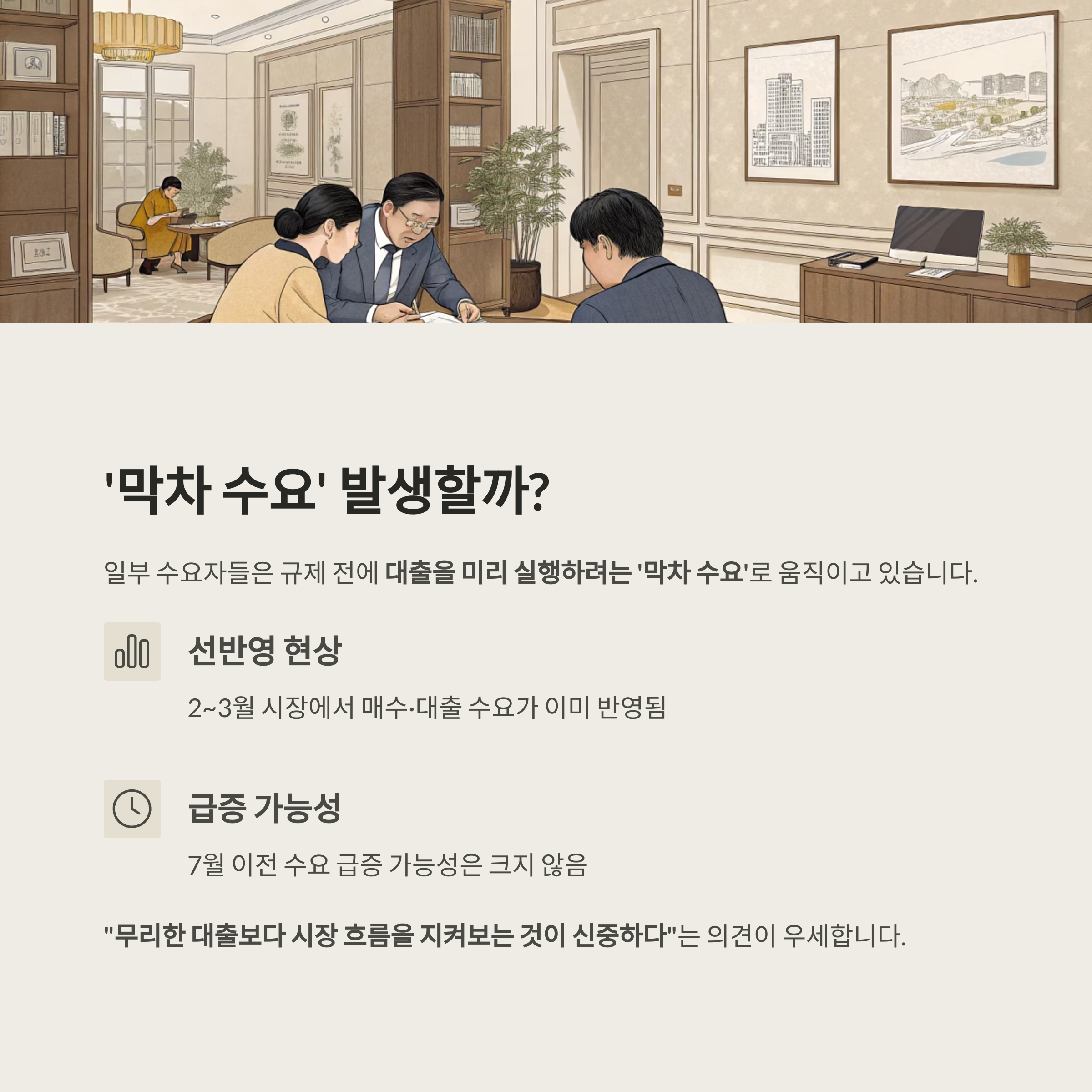 일부 수요자들은 규제 전에 대출을 미리 실행하려는 ‘막차 수요’로 움직이고 있습니다.