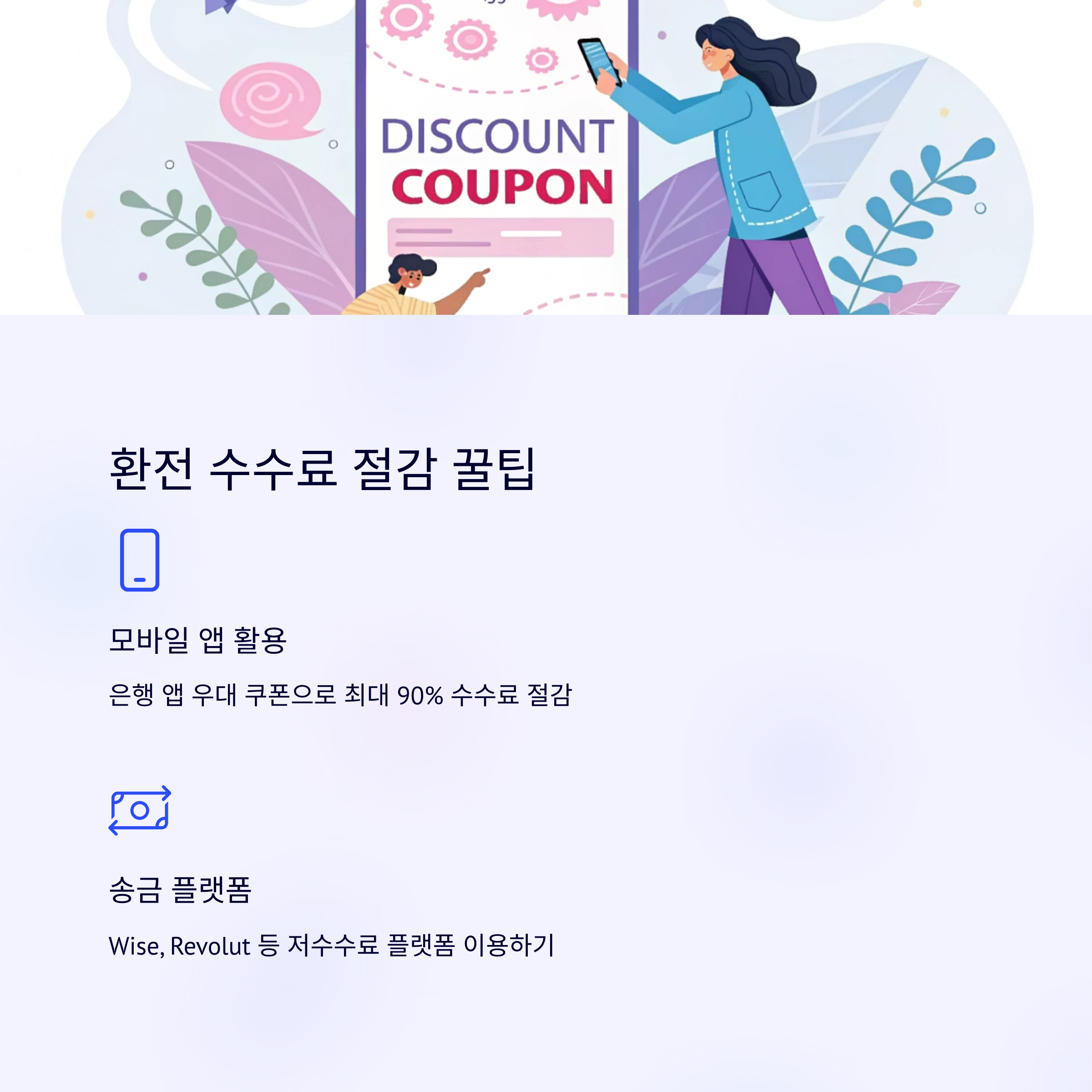 환전 수수료를 아끼려면 모바일 앱 우대 쿠폰을 적극 활용해야 합니다.