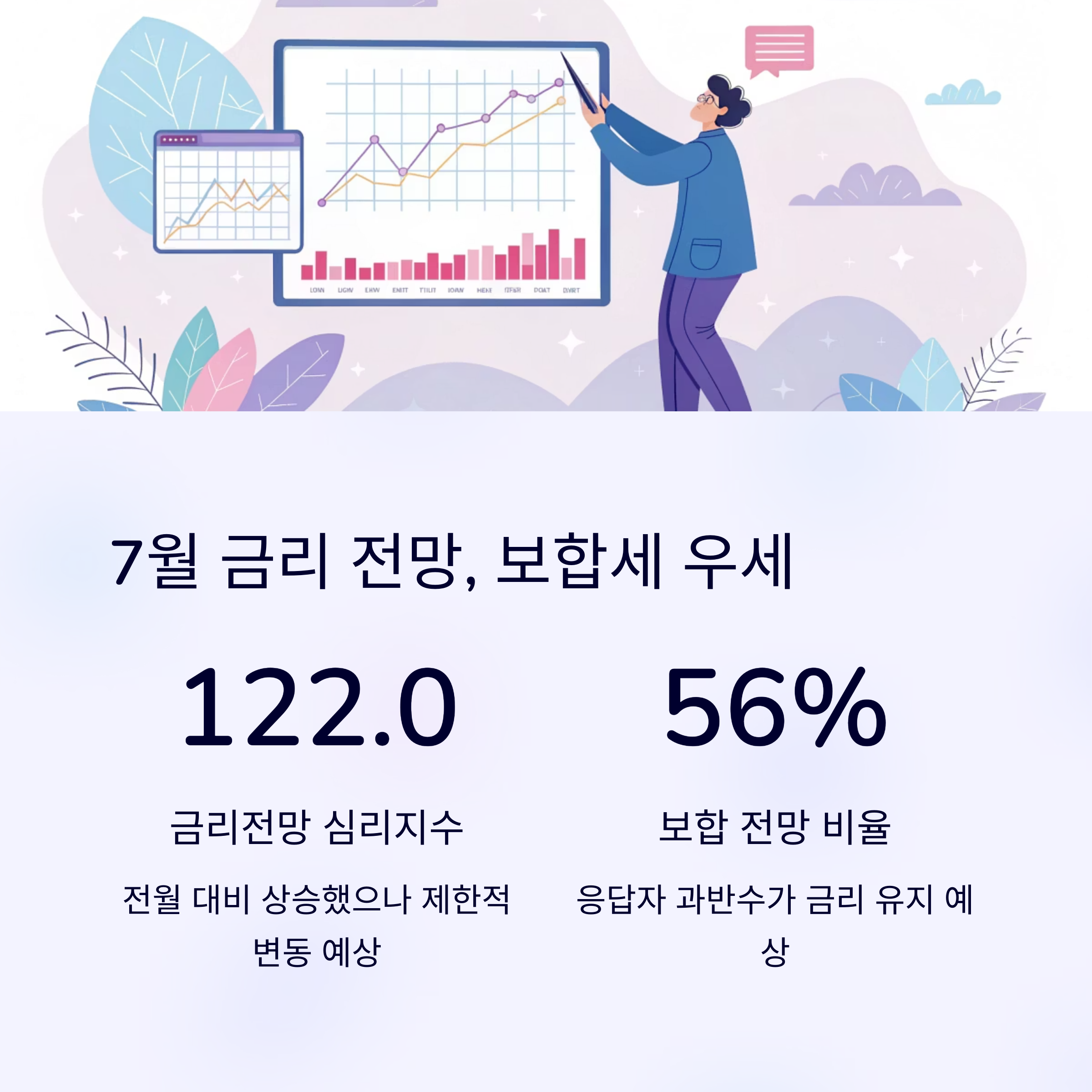 7월 채권시장 금리전망 심리지수는 122.0으로 전월보다 상승했지만,