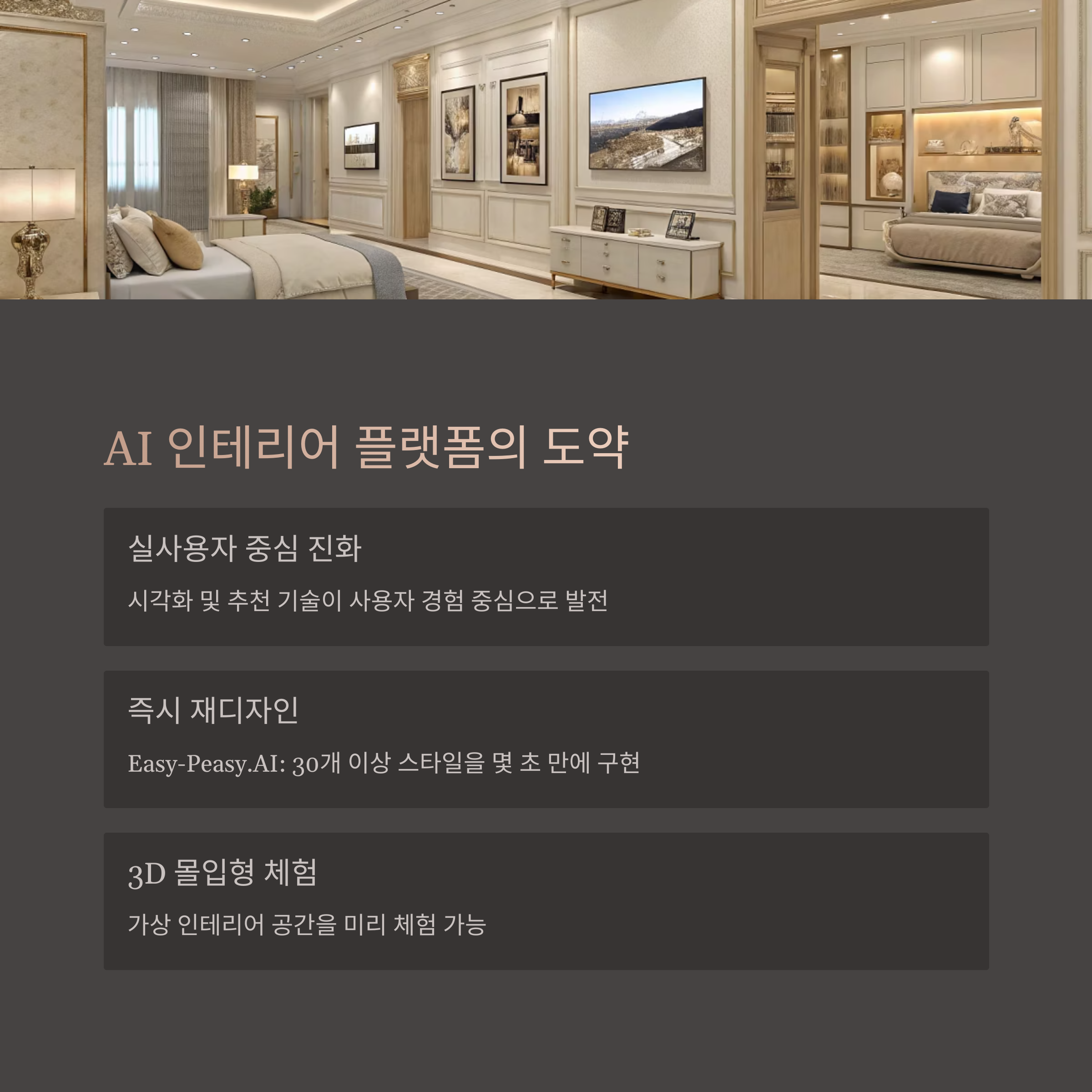 AI 인테리어는 단순한 편의성이 아니라 공간에 대한 새로운 인식을 제공합니다.
