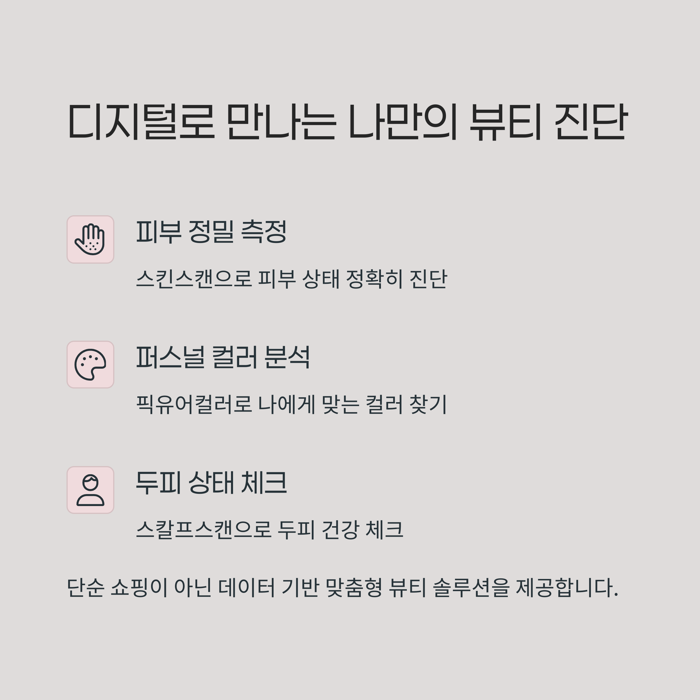 개인화된 쇼핑 경험을 제공합니다. 이러한 체험형 서비스는 고객 스스로 자신의 피부와 두피 상태를 정확히 이해할
