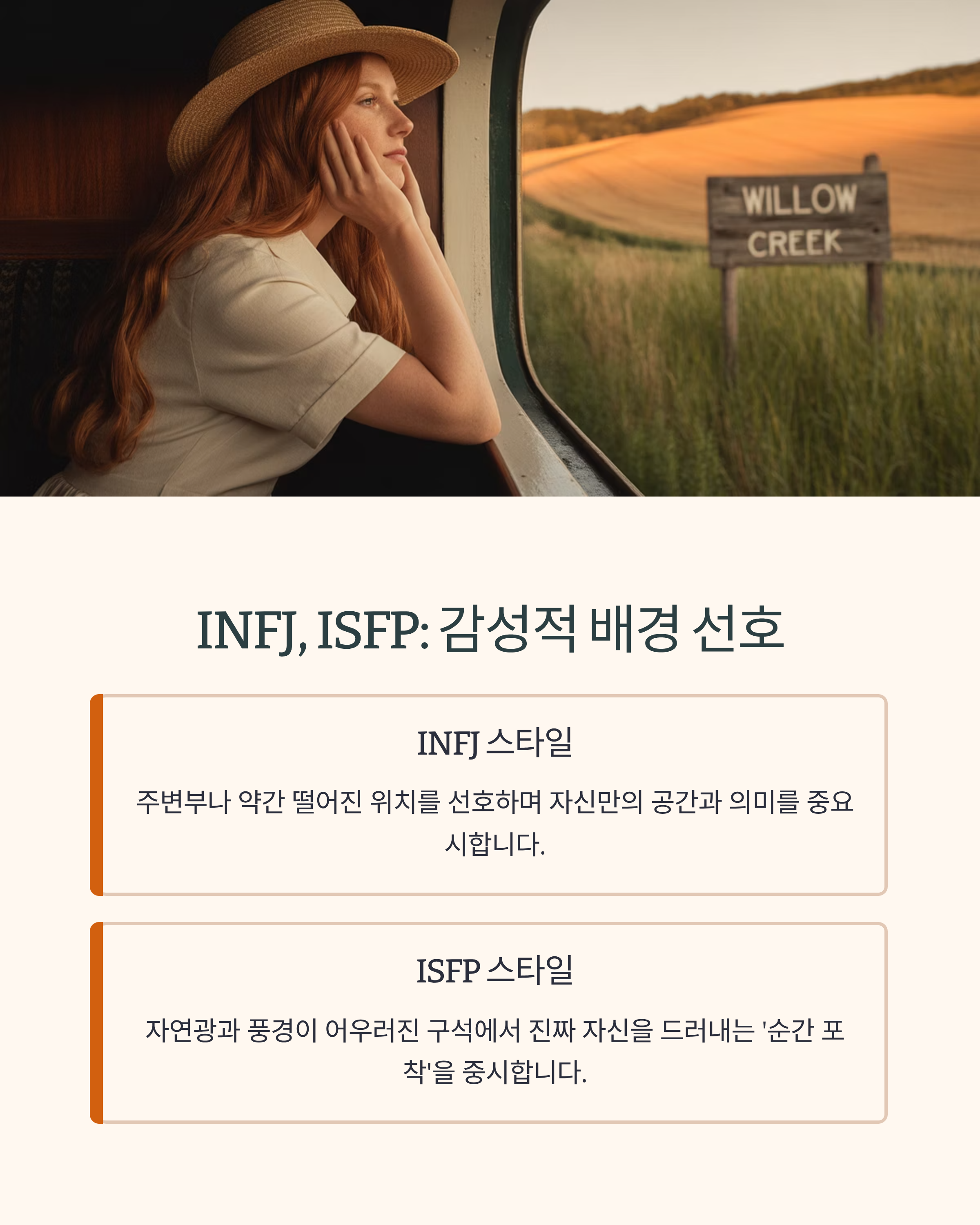 | ISFP | 구석, 배경 | 감성 중심, 순간 포착 선호 |