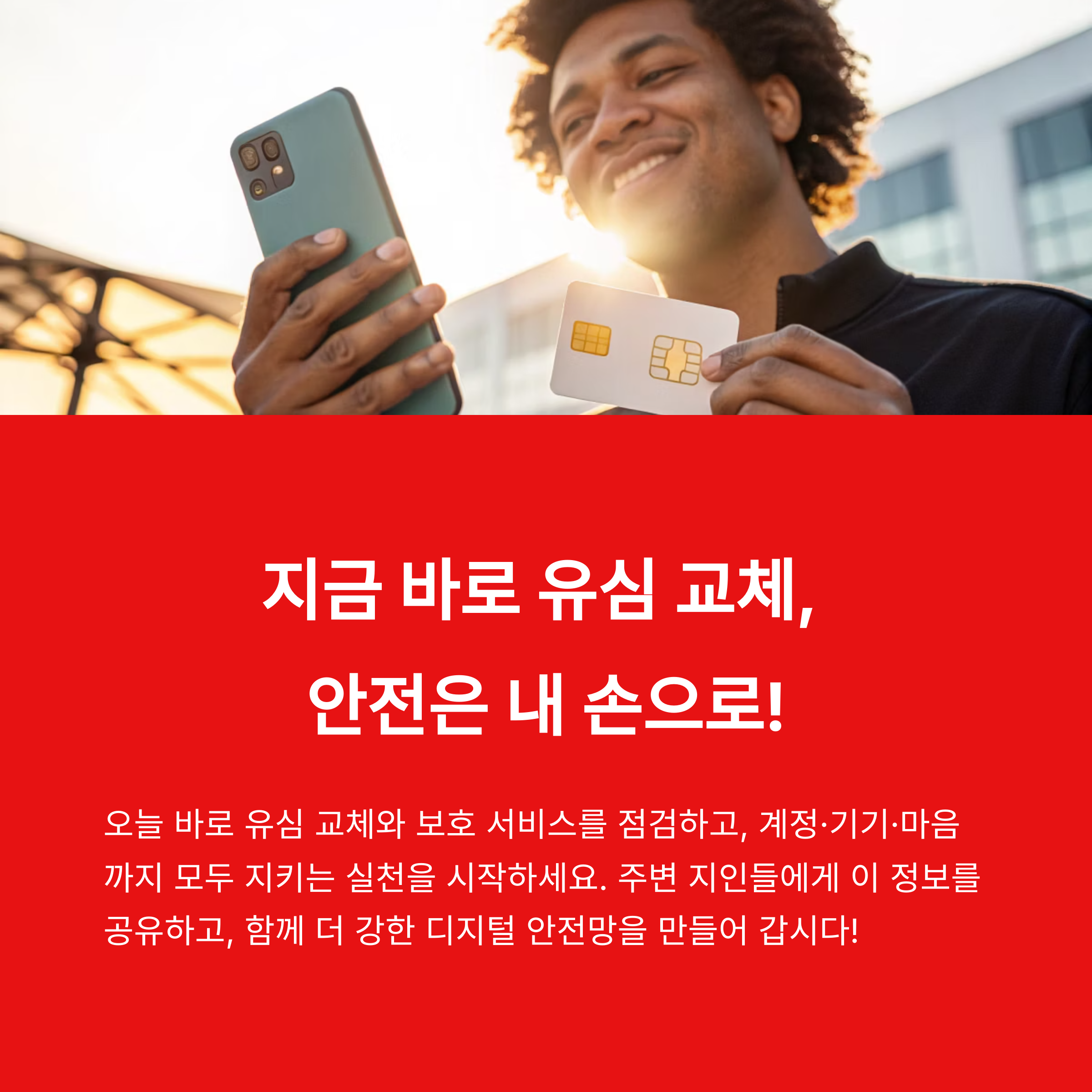 "개인 정보 보호와 금융 보안을 지키는 가장 쉬운 방법이 바로 유심 교체입니다."