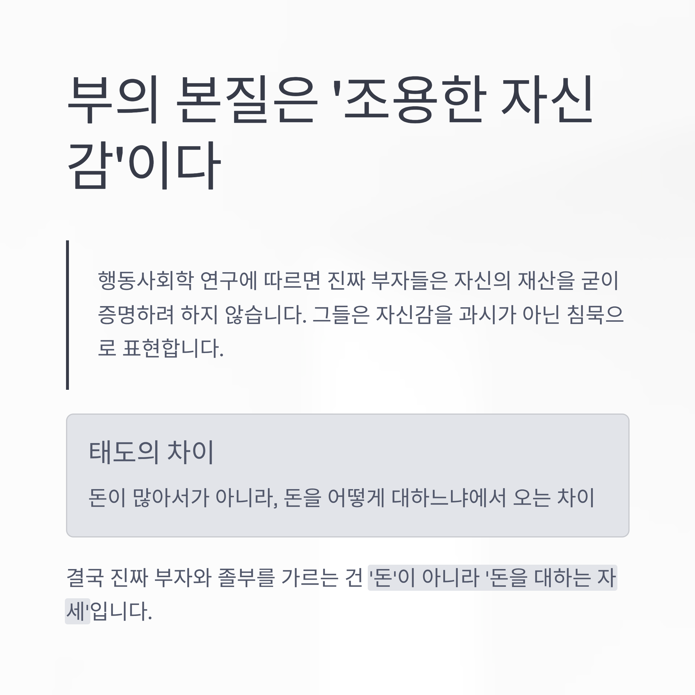 행동사회학 연구에 따르면 진짜 부자들은 자신의 재산을 굳이 증명하려 하지 않습니다.