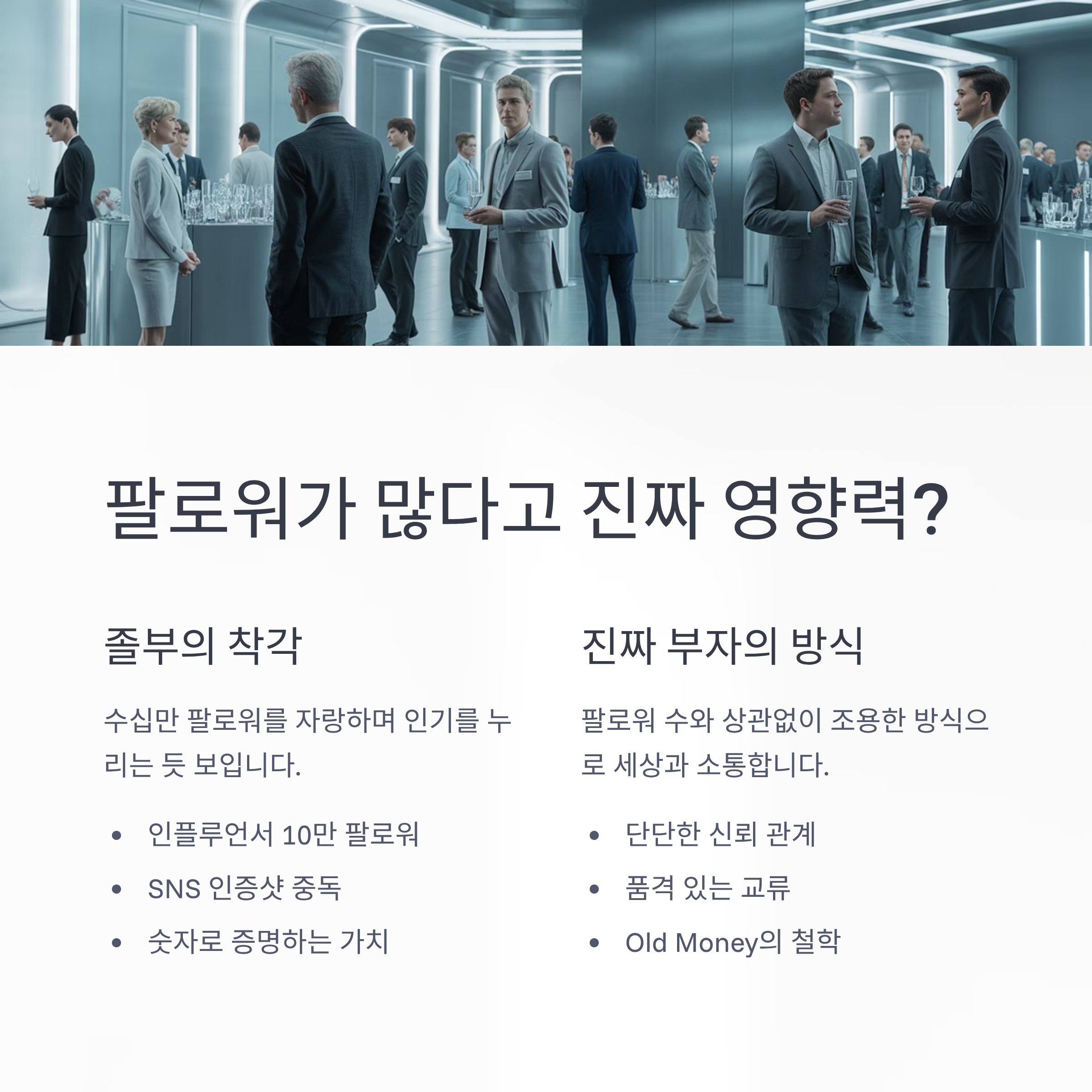 SNS 시대, 모든 것이 공유되는 세상 속에서 진짜 부자와 졸부의 차이는 더 또렷해지고 있습니다. 단순히 재산의 크기가 아니라 ‘어떻게 보이느냐’가 중요한 기준이 되고 있는데요. 조용한 품격을 지닌 진짜 부자와, 소비로 자신을 증명하려는 졸부의 패턴은 실제 통계와 전문가 분석에서도 명확하게 드러납니다. 이 글에서는 그 구체적인 차이를 다양한 데이터와 사례를 통해 들여다봅니다.