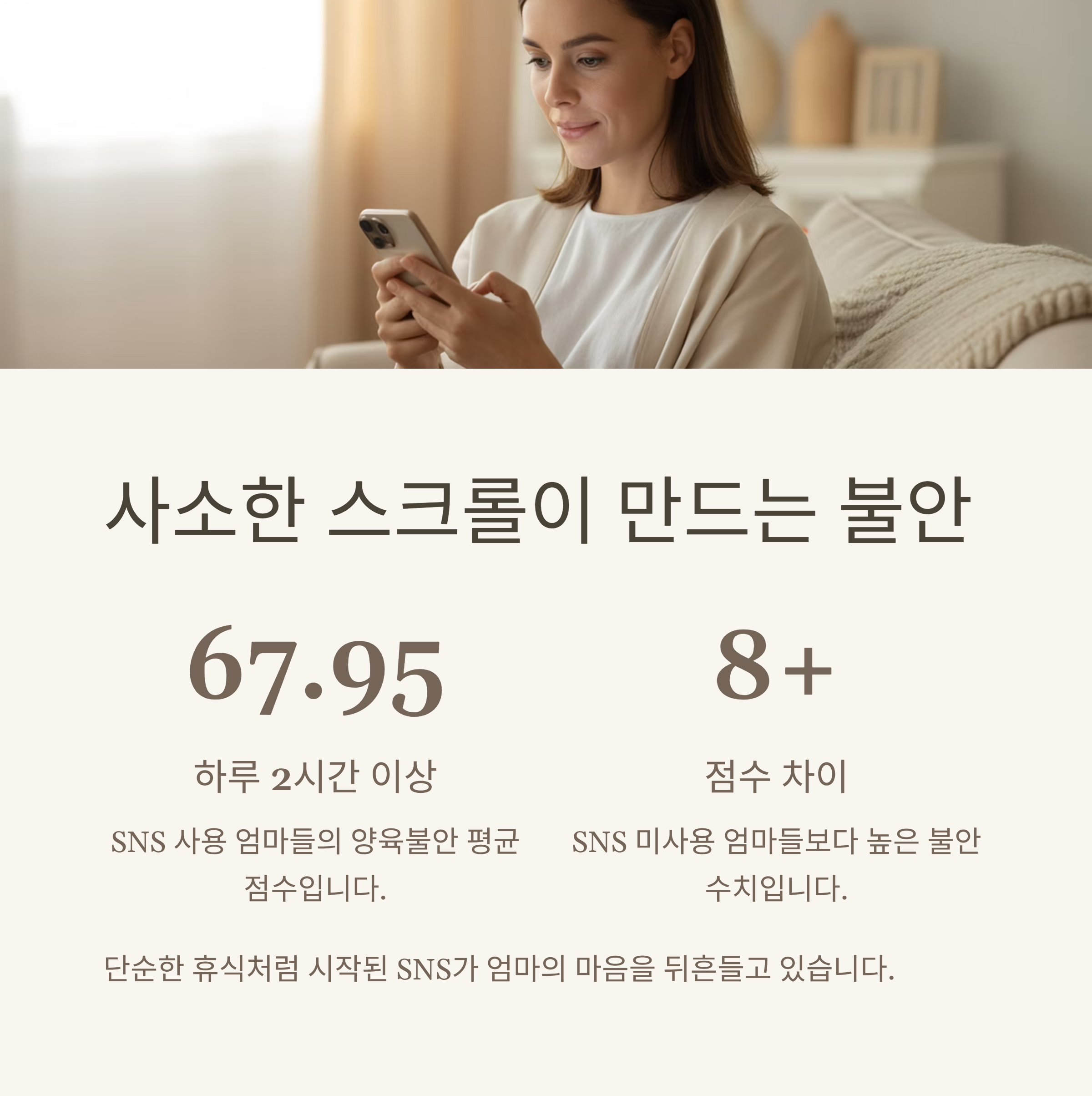 단지 휴식처럼 들여다본 SNS지만, 그 안의 수많은 정보와 비교는 엄마의 마음을 뒤흔들고 있었던 겁니다.