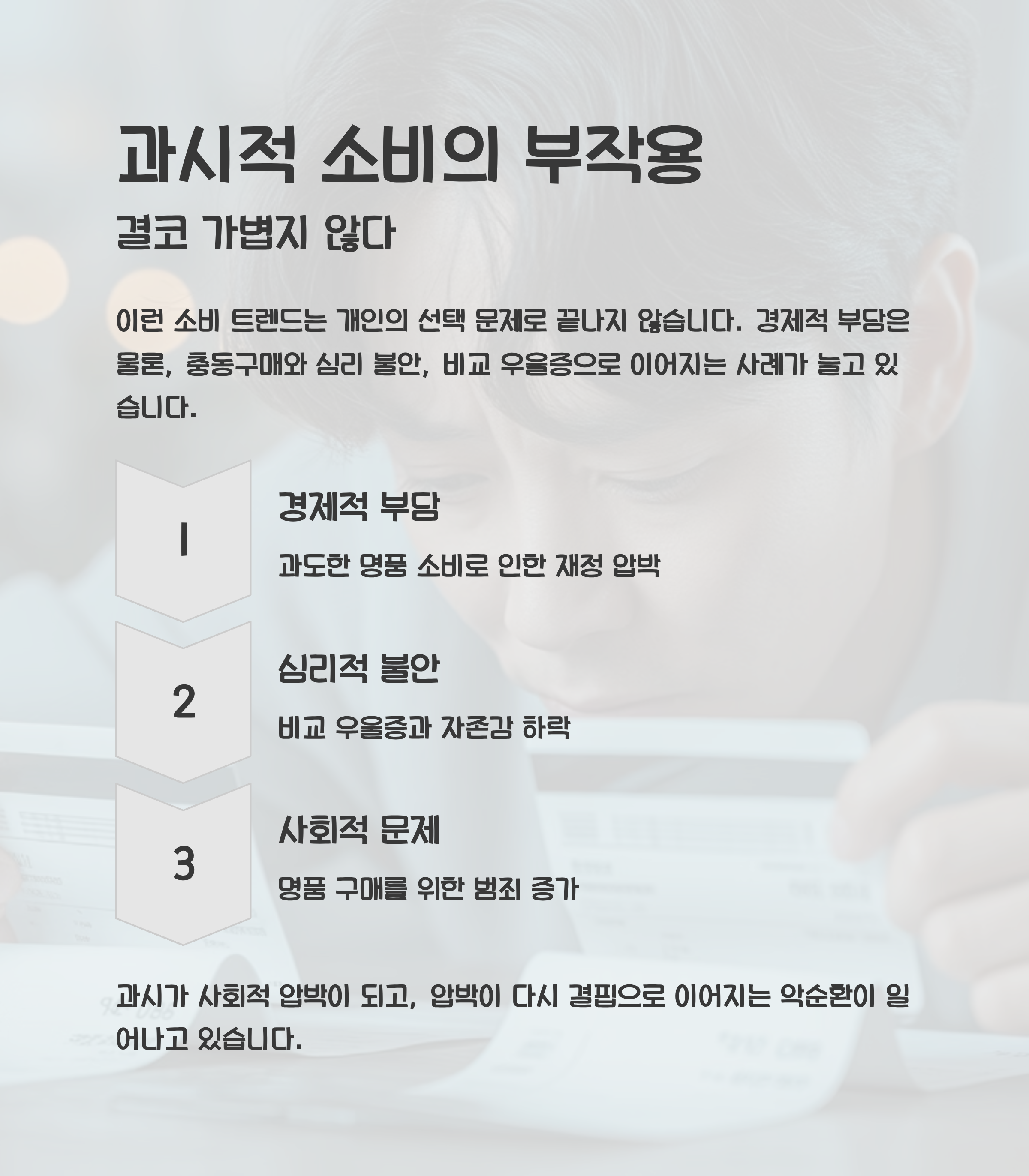 경제적 부담은 물론, 충동구매와 심리 불안, 비교 우울증으로 이어지는 사례가 늘고 있습니다. 심지어 명품을 사기 위해 범죄를 저지르는 청년들도 나오고 있어요.