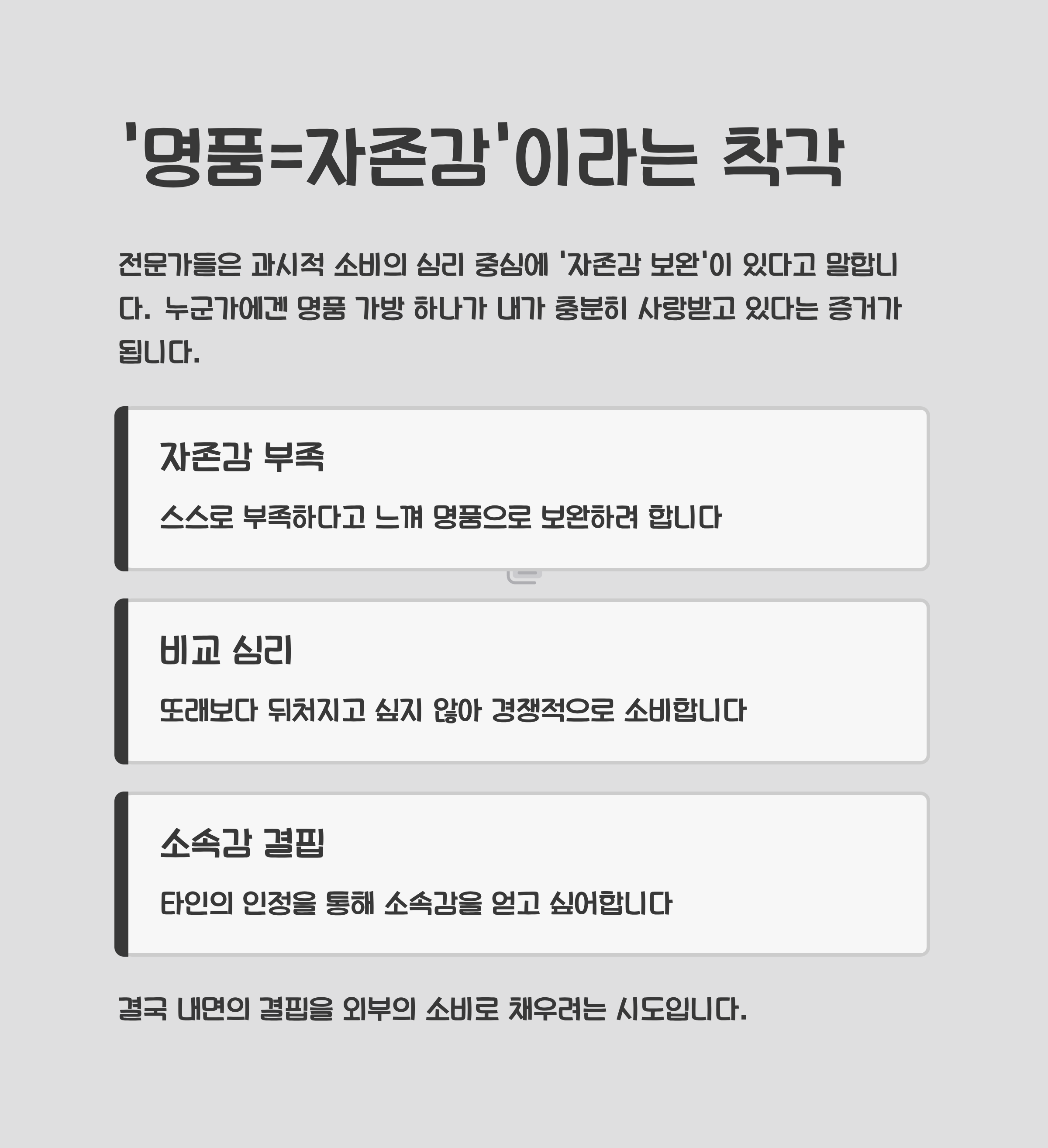 | 자존감 부족 | 스스로 부족하다고 느껴 명품으로 보완 |