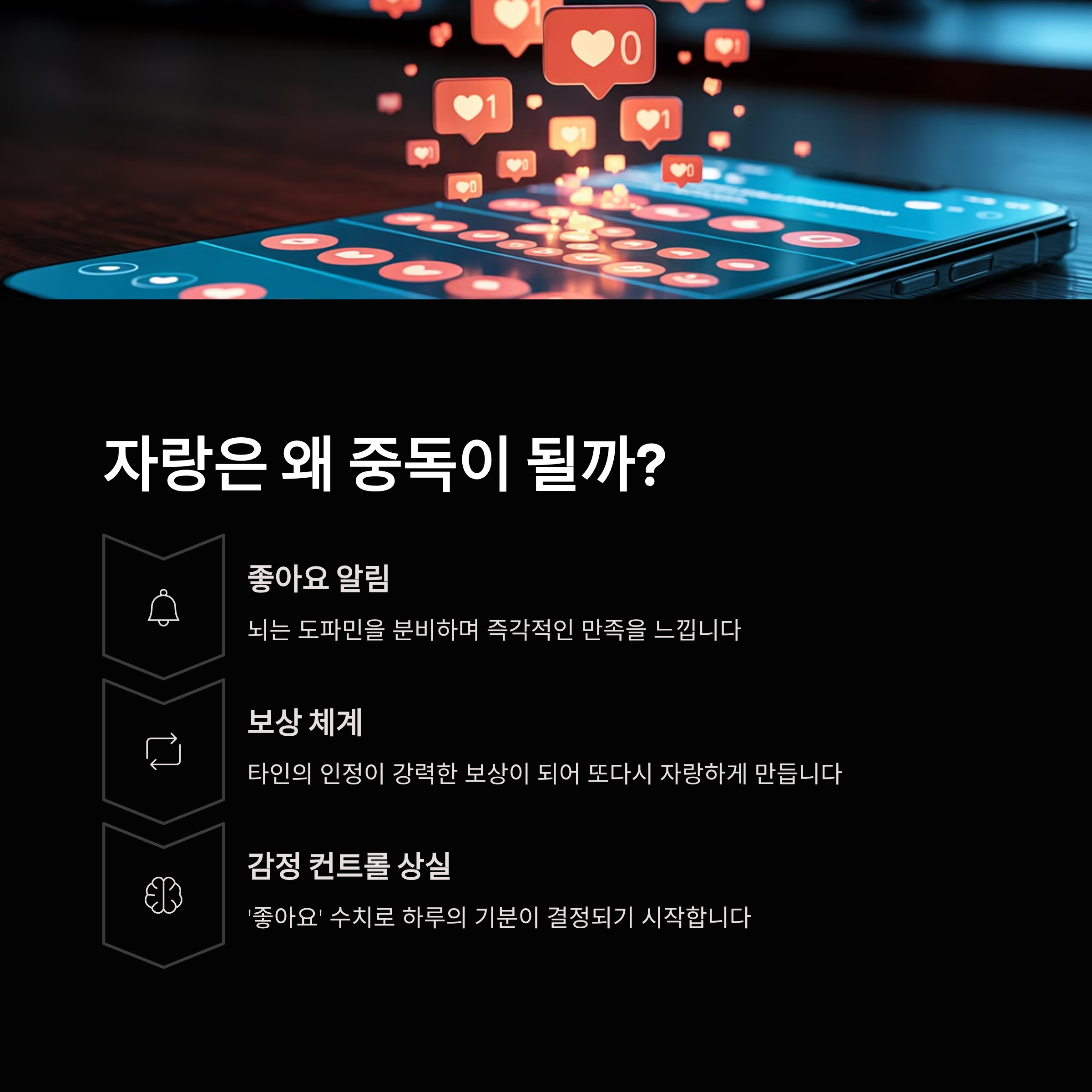 즉각적인 만족과 타인의 인정은 강력한 보상 체계가 되어, 또다시 자랑하게 만듭니다.